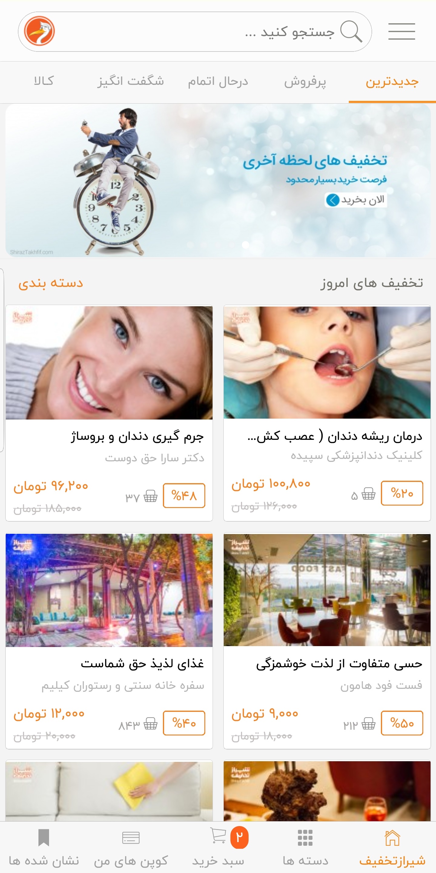 شیراز تخفیف بزرگترین سایت تخفیف گروهی در شهر شیراز است که به کمک آن می توانید کل سطح شیراز را با تخفیف بگردید. برای راحتی استفاده از آن کافیست اپلیکیشن شیراز تخفیف را دانلود کنید و به سادگی یک کلیک تخفیف مورد نظر خود را خریداری کنید.